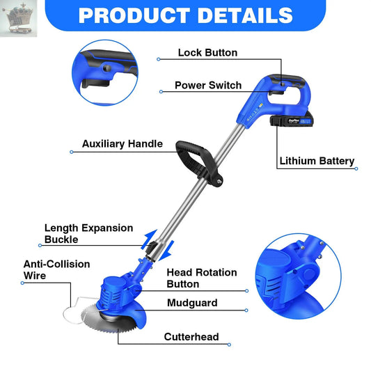 21V Cordless Electric Strimmer Grass Trimmer Weed Cutter Garden Edger + Battery