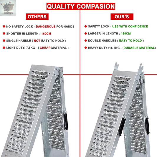 2X Foldable Loading Ramps 400KG 180Cm For Golf Buggy Lawnmower Quad Scooter