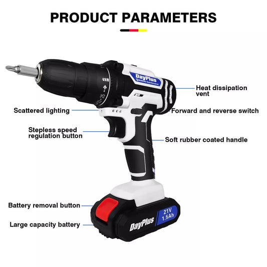 21V Cordless Combi Drill Electric Powerful Driver Screwdriver Battery LED Light