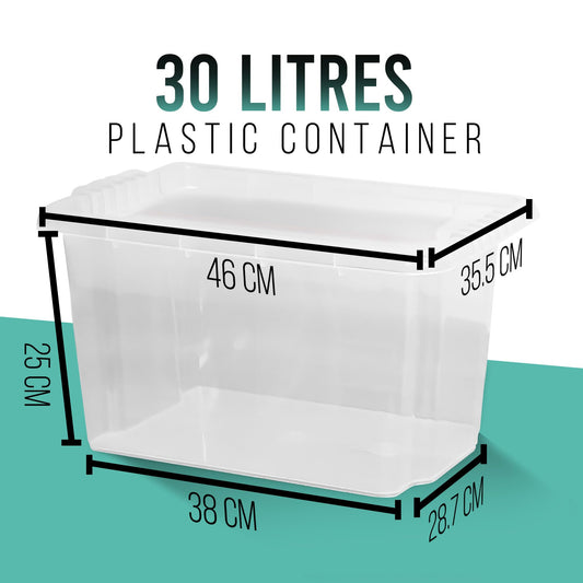 30L Plastic Storage Box With Lid Set of 4