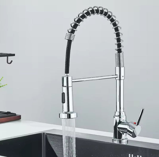 360°Chrome Spring Pull Down Kitchen Faucets Stream Spray Head Hot Cold Water Tap Stainless steel Rotation Kitchen Mixer Tap Crane