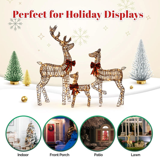 3pcs 4FT Lighted Christmas Rattan Reindeer Xmas Decoration Deer Family Set Brown