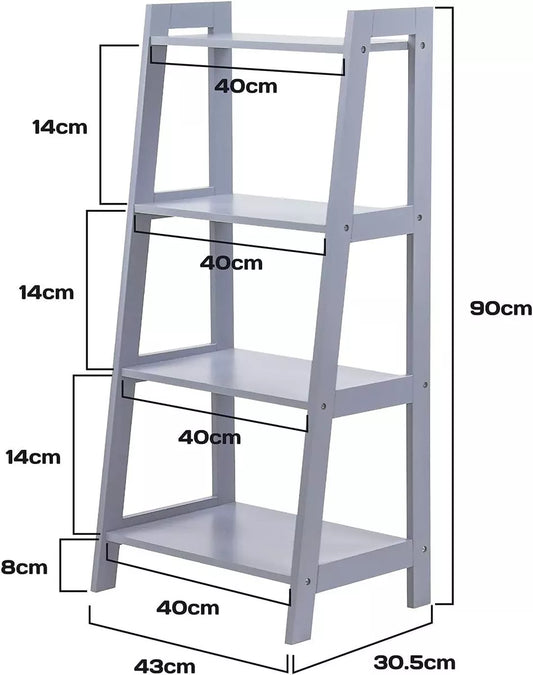 4 Tier Ladder Shelf Storage Shelving Bathroom Unit Bookcase Display Stand Grey