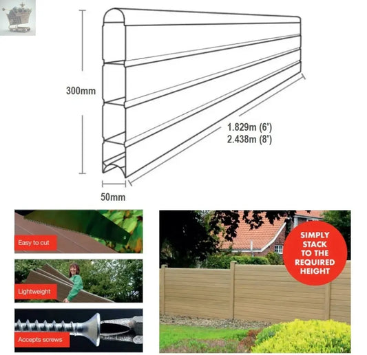 5 Pack of Plastic 6ft wide Fence Panels Composite Fencing Eco Replacement uPVC Garden Boards Post