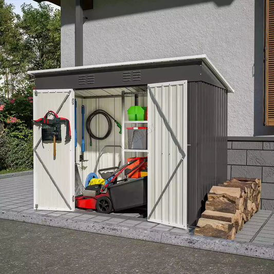 4X8FT Garden Shed Pent Roof Metal Free Foundation Base Storage House Anthracite