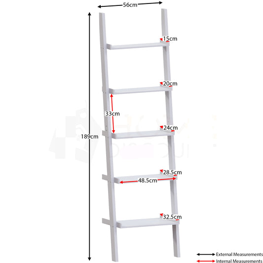5 Tier White Ladder Shelf Bookcase Display Storage Shelving