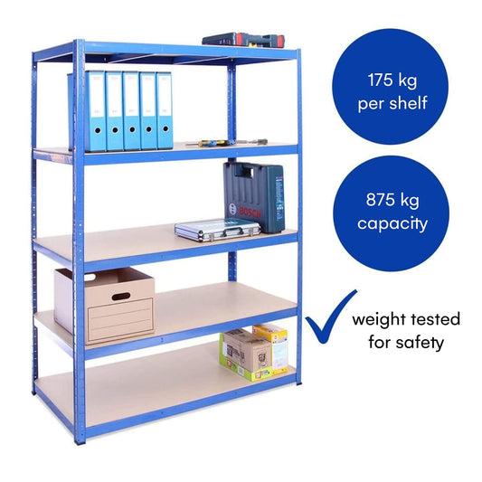 5 Tier Racking Shelf Heavy Duty 150x75x30cm Steel Garage Shelving Unit Garden Shed Shelving Blue