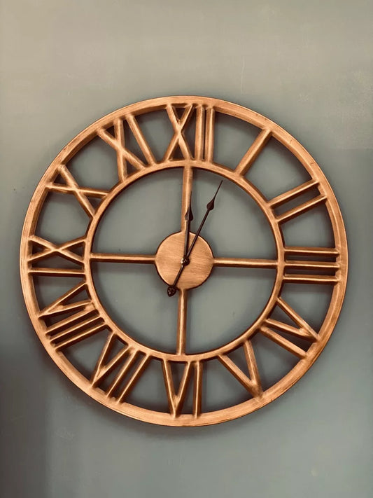 60cm Roman Numerals Wall Clock Open Round Face Brushed Bronze Colour
