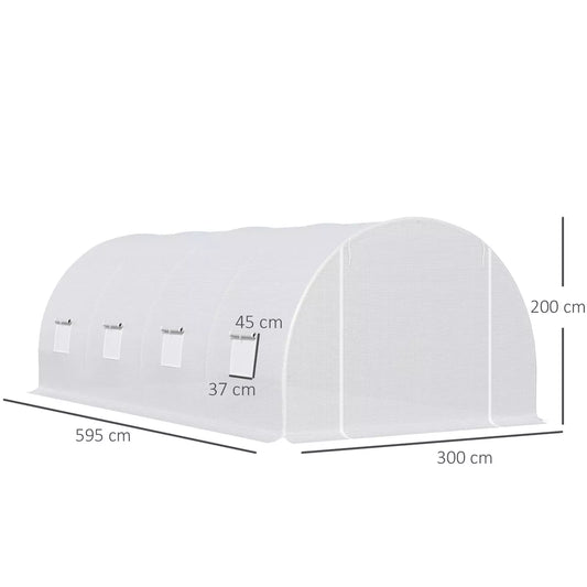 6 x 3 x 2 m Polytunnel Greenhouse w/ Zippered Door and 8 Windows