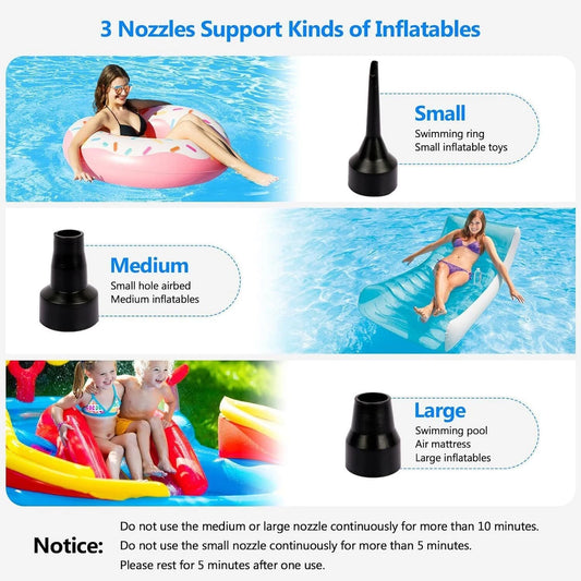 AC Electric Air Pump Camping Inflatables Airbed Mattress Paddling Pool 3 Nozzles