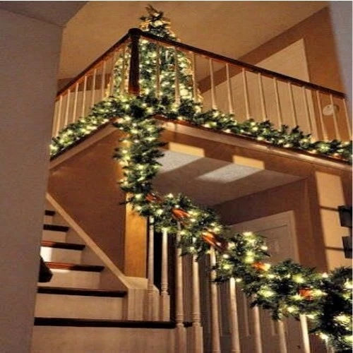 9ft Bushy Pine XMAS Christmas Garland with Lights for Stairs Outdoor Decorations
