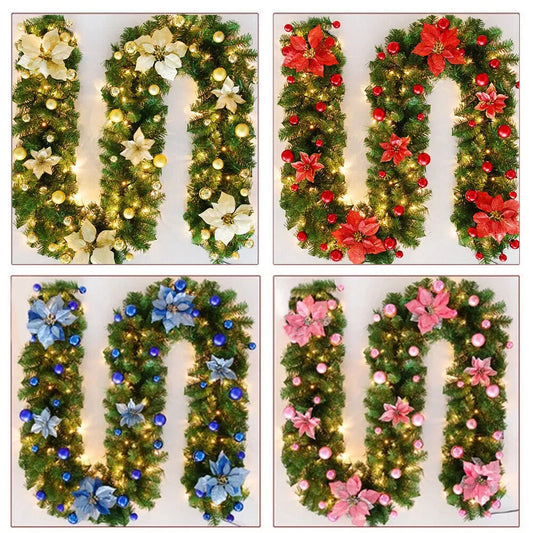 9FT Pre Lit Christmas Garland LED Lights Wreath Xmas Decorations Christmas Balls