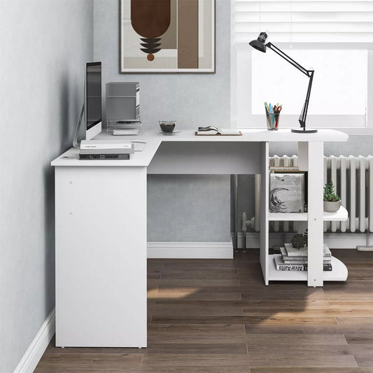 Corner Computer Desk Home Office Study PC Laptop Gaming Desk Workstation White