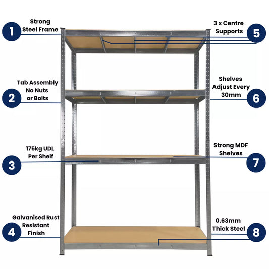 Garage Shelving Boltless Metal Racking Shelf Unit Strong Storage Shelves 175KG 180x120x40cm