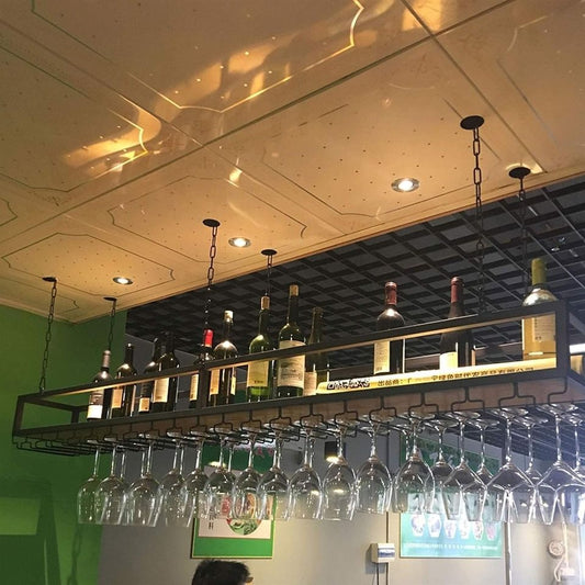 Hanging Wine Rack Metal Ceiling Wine Glass Rack Bar Unit Floating Shelves Industrial