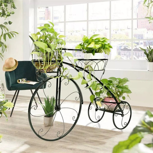 Large Bike Planter Garden Ornament Metal Bicycle Plant Stand with 3 Flower Pots