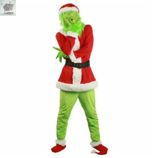 Mens adult Christmas The Grinch Costume Cosplay Santa Fancy Mask Outfit Dress UK
