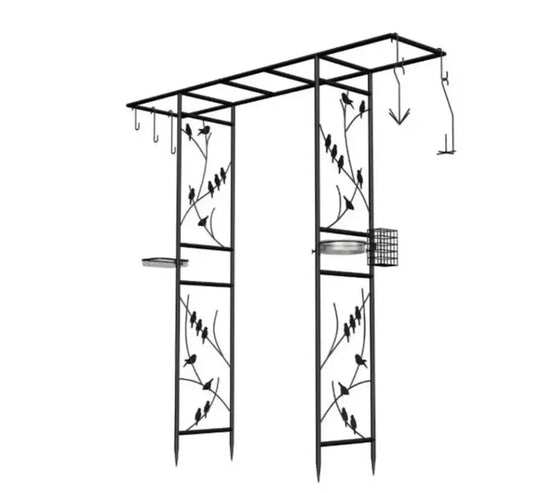 Metal Garden Arch Bird Feeder Heavy Duty Climbing Plants Support Trellis 2m