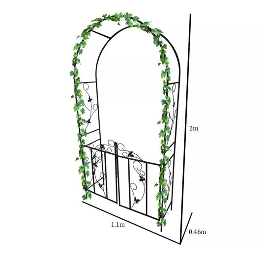 Metal Garden Arch With Gate Archway Ornament For Climbing Plants New