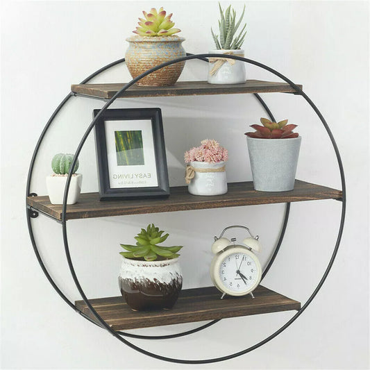 Metal Frame Round Wall Floating Ledge Shelf Book Storage Spice Rack Home Decor