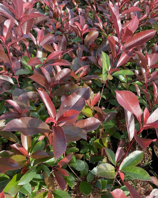 10x PHOTINIA RED ROBIN HEDGING SHRUB PLANTS 2LT POTS WHITE FLOWERS 70CM TALL