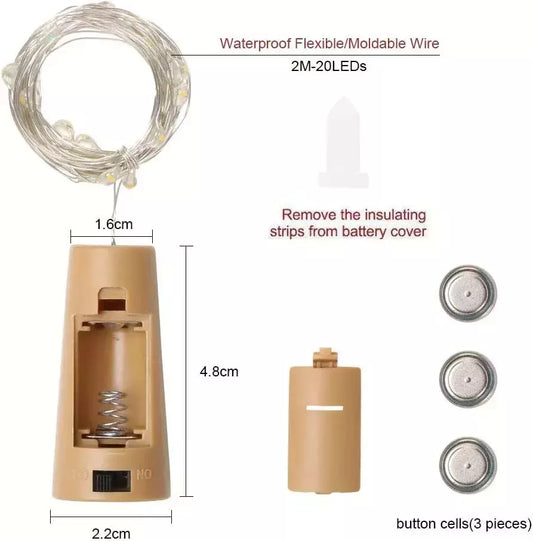 12 Pack Bottle Lights String Lights Wine Lights with Cork 2M 20 LEDs for Party