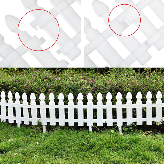 12 WHITE PLASTIC PICKET FENCING WOODEN EFFECT LAWN BORDER EDGE GARDEN EDGING