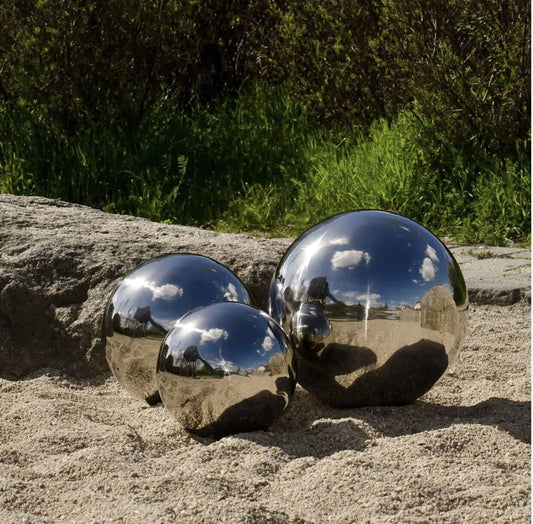 Set Of 3 Silver Steel Large Gazing Balls For Garden Ornaments (20Cm, 25Cm & 30Cm)