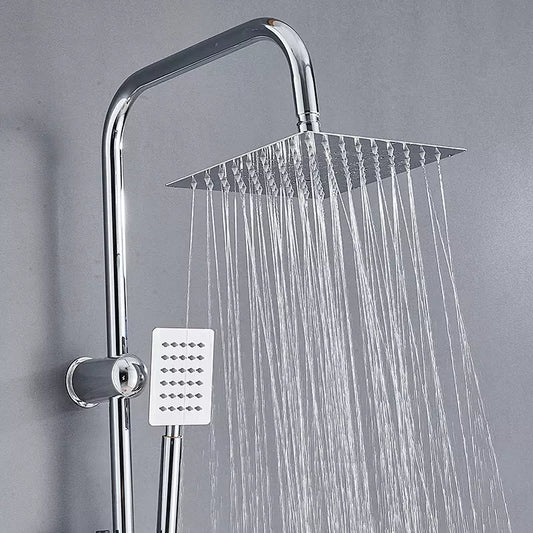 Shower Kit Twin Head 2 Mixer Shower Heads Rail Hose Riser Square Bathroom Set