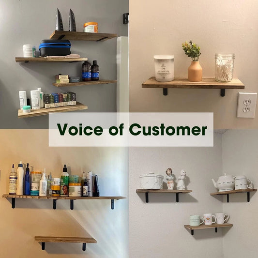 5 Piece Carbonized Natural Wood Shelves Floating Shelves Wall Mounted Storage Wooden Display Shelf