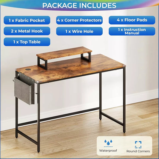 Computer Desk With Monitor Stand / Storage Bag / Hook Home Office Wooden Workstation