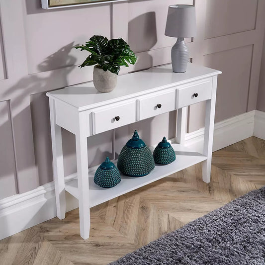 Console Table 3 Drawer Hallway Entryway Side Desk Shelf Storage White Painted