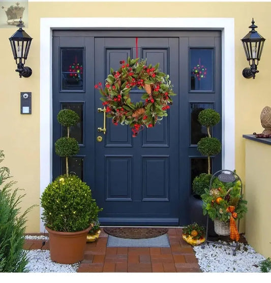 Artificial Christmas Wreath For Front Door Pine Cone Red Berries Wreath Garland