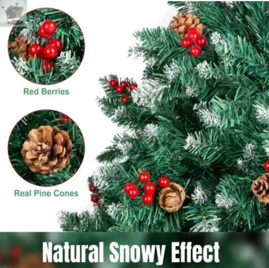 Snow Covered Christmas Tree With Lights 5ft Luxury Pine Cones Bushy Prelit