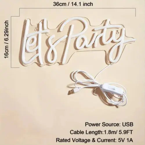 Let's Party LED Neon Sign, 5V USB Powered Neon Light With Switch For Bedroom