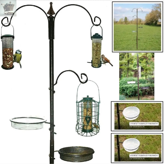 BIRD FEEDING STATION BLACK METAL BATH TABLE SEED TRAY HANGING FEEDERS ALLPURPOSE