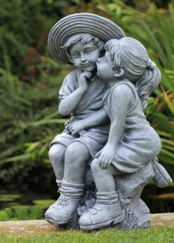 Garden Ornaments Boy & Girl Loving Kissing Cherub Statue Decor Beige Grey Large