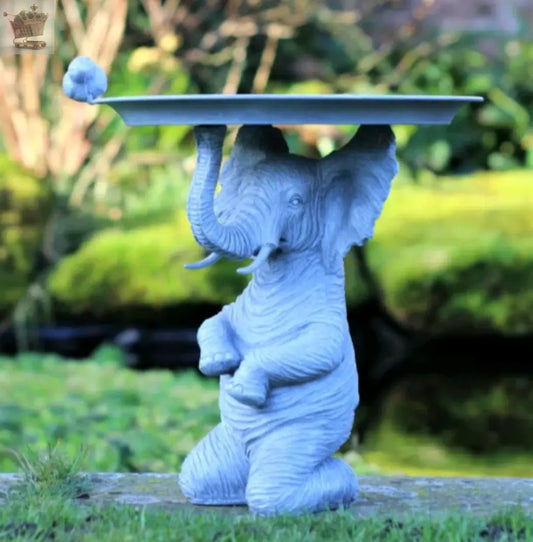 Garden Ornaments Elephant Bird Feeder Bath Grey Statue Outdoor Indoor 30cm