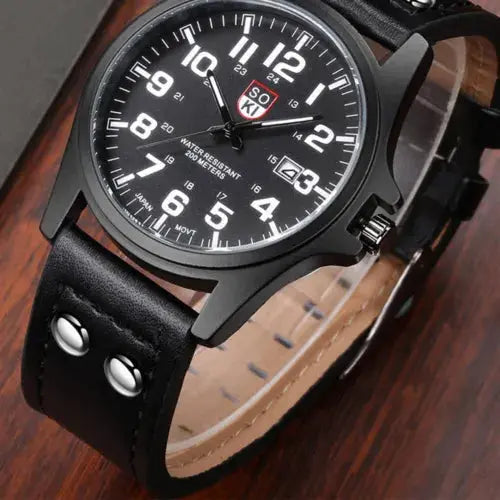 Men’s Military Leather Date Quartz Analog Army Casual Dress Wrist Watches UK