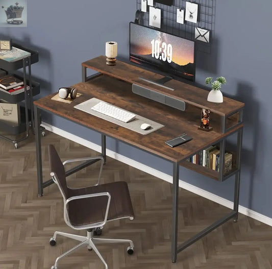 Computer Desk Laptop PC Study Table Writing Home Office Desk Workstation With Multiple Shelves