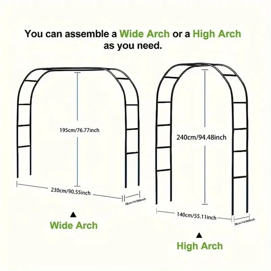 2 x LARGE 2.4M HEAVY DUTY METAL GARDEN ARCH STRONG ROSE CLIMBING PLANTS SUPPORT GREEN