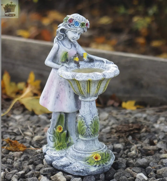 110cm Bronze Effect Resin Garden Bird Bath & Table with Solar Light