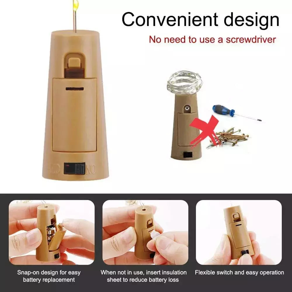 Each wine bottle cork lights powered by 3 pcs LR44 Batteries, it can provide up to 20 hours of light by three new batteries. Best power-saving string lights will give you a fascinate in new lights world.