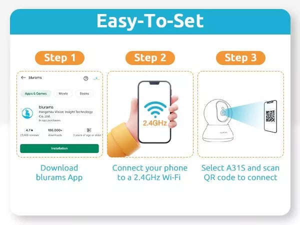 EASY SETUP & MULTI-DEVICE VIEWING: Download the blurams App - Select A31S - Scan the QR Code - Connect! The blurams App supports viewing up to 4 cameras simultaneously. Share the dog camera with your family to watch every precious moment together