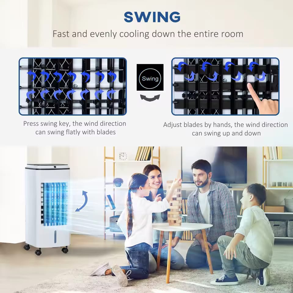 3-in-1 Portable Air Cooler with 4L Water Tank 7.5H Timer, Remote White