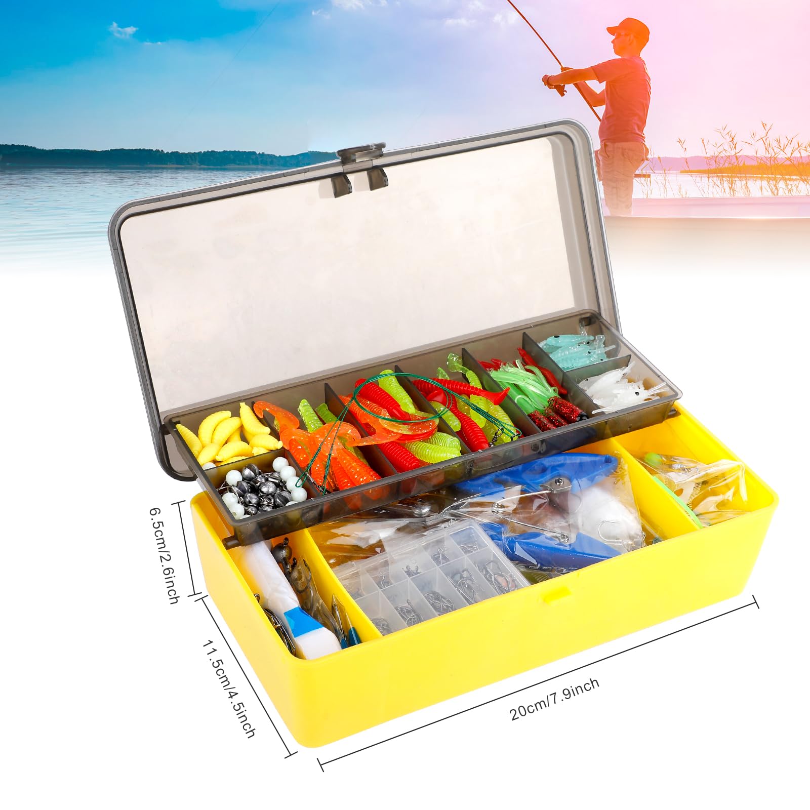 🐟【Easy to Carry Around】- The compact fishing tackle features a double-layer box that is convenient for getting the exact fishing tackle you need. The bass fishing lure set measures 20 x 11.5 x 6.5 cm/7.9 x 4.5 x 2.6 inches. Allows you to travel to your favourite fishing spot and enjoy fishing whenever and wherever you want.