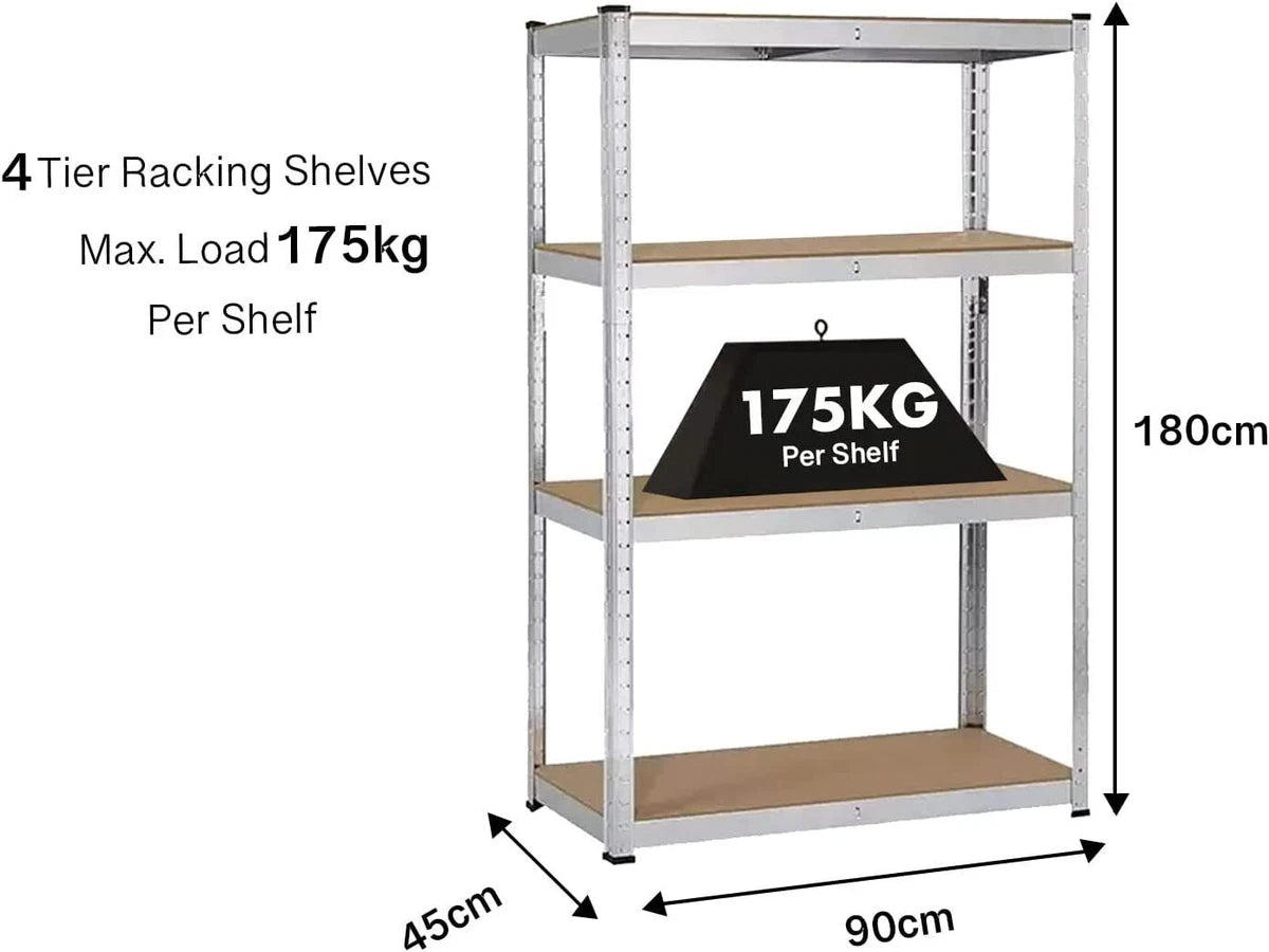 4 Tier Racking Shelf 180x90x45cm Heavy Duty Garage Shelving Storage Shelves Unit