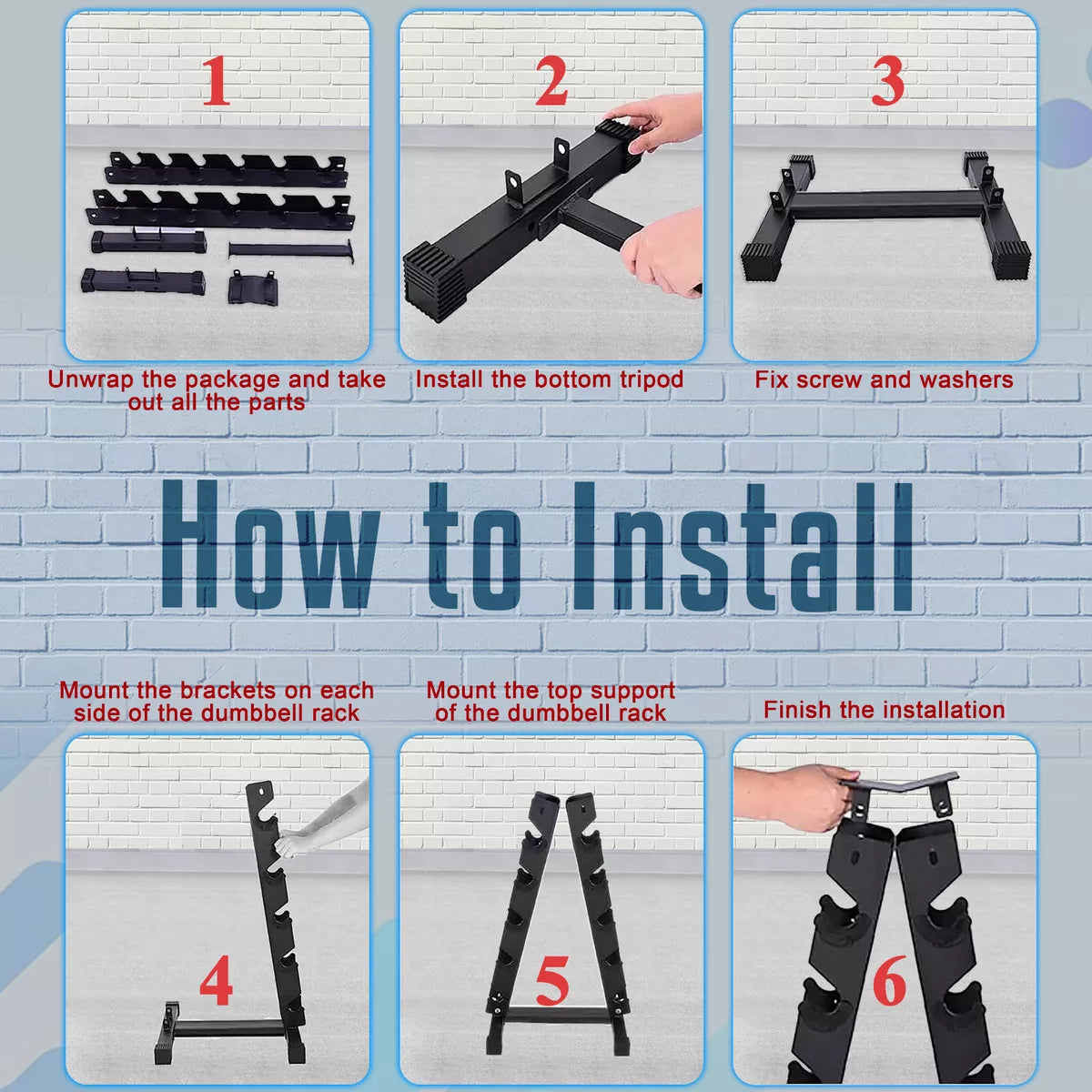 Security reinforcement :- The dumbbell holder is seamlessly welded at the joints and uses enlarged load-bearing screws to further enhance the stability of the holder. It is an ultra-stable thickened steel plate with non-slip screws, which will not loosen or fall off.