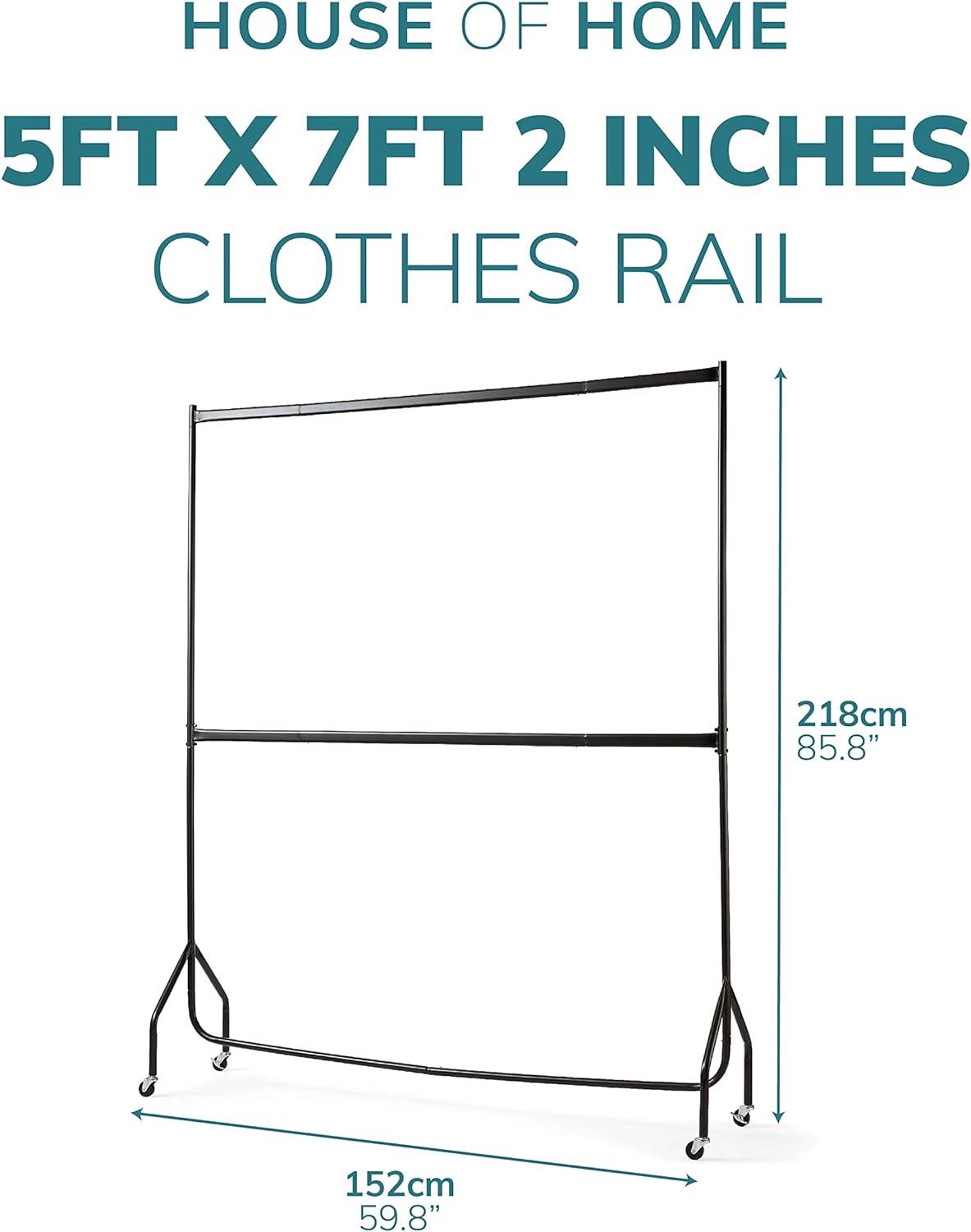 5ft long x 7ft Two Tier Heavy Duty Clothes Rail Garment Hanging Rack In Black