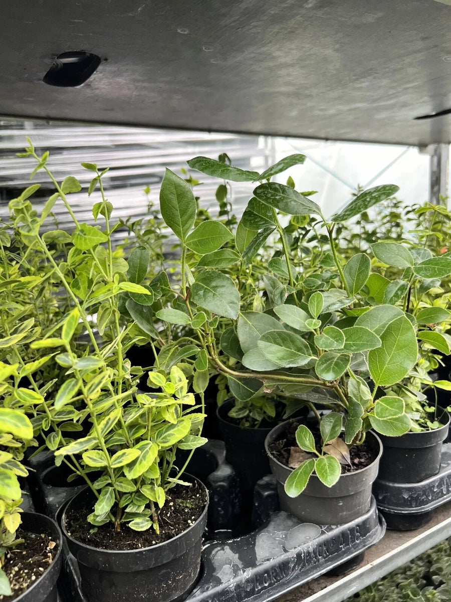5 mixed evergreen plants available, all frost hardy plants . Set can include from a selection of Euonymus , Pieris , strobilanthes , prunus , choisya, viburnum, Leucothoe, hebes , skimmia’s , heathers & more
